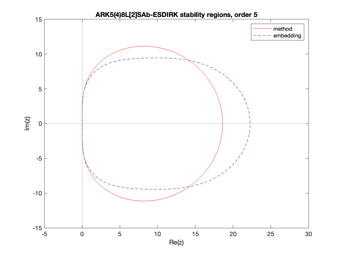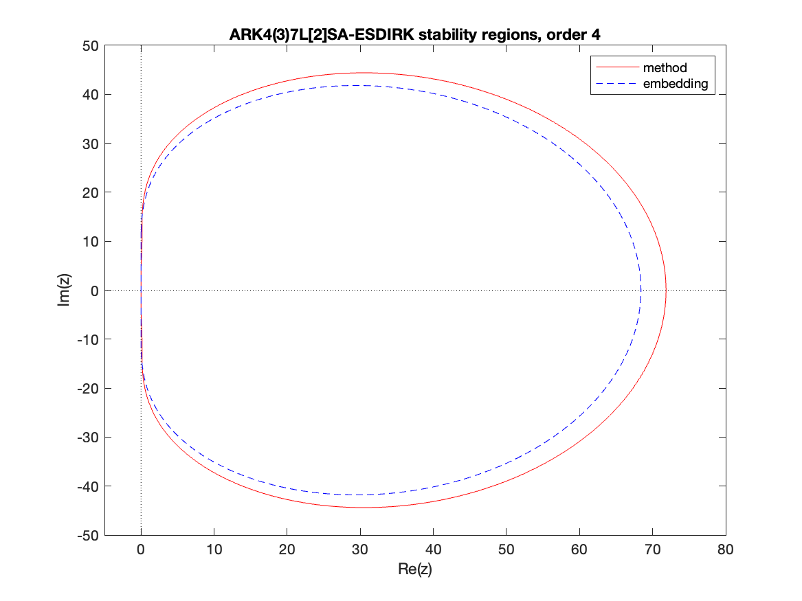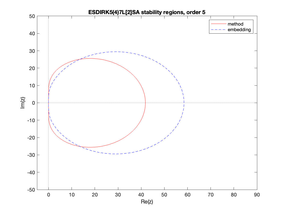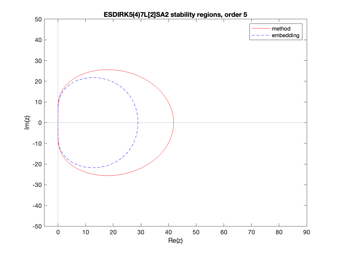Changed in version 6.3.0: Replaced by ARKODE_ESDIRK547L2SA2_7_4_5 as the default 5th order implicit method and replaced by ARKODE_ARK548L2SAb_DIRK_8_4_5 as the implicit portion of the default 5th order additive method