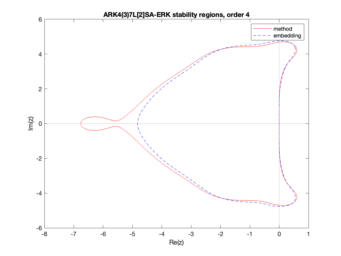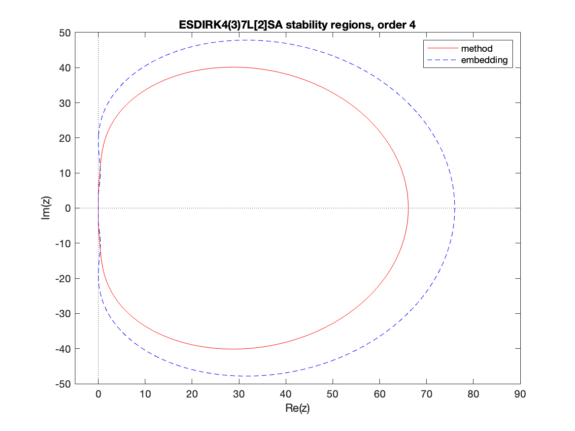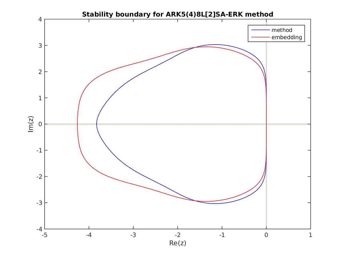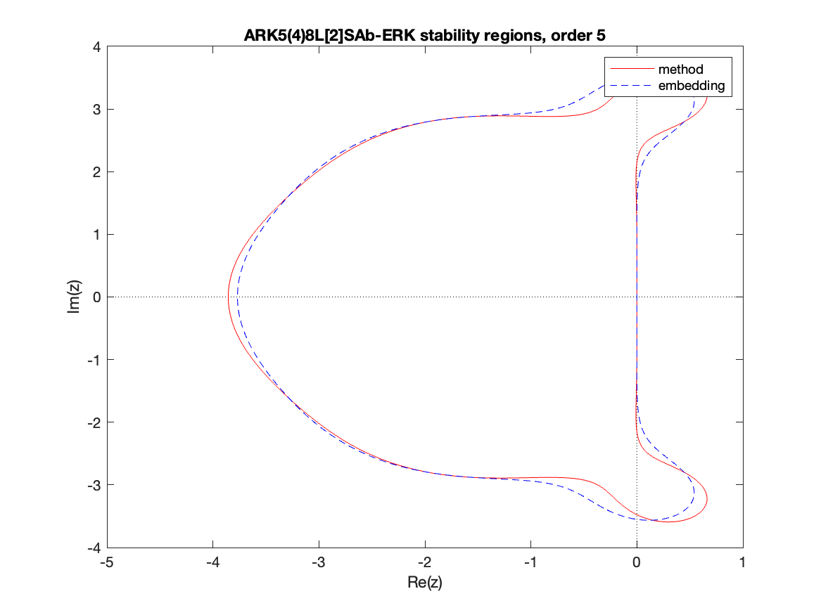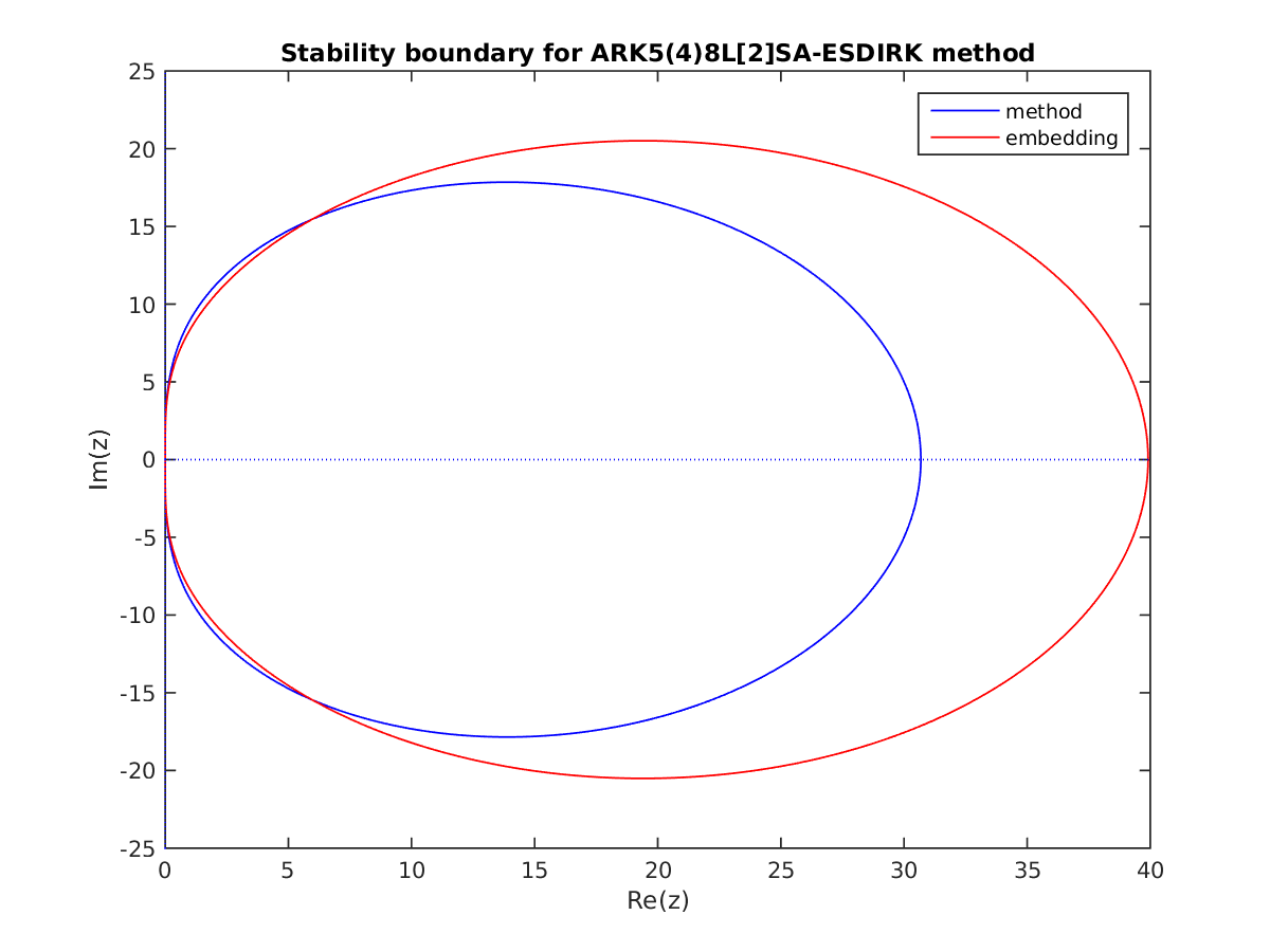 Changed in version 6.3.0: Replaced by ARKODE_ESDIRK547L2SA2_7_4_5 as the default 5th order implicit method and replaced by ARKODE_ARK548L2SAb_DIRK_8_4_5 as the implicit portion of the default 5th order additive method