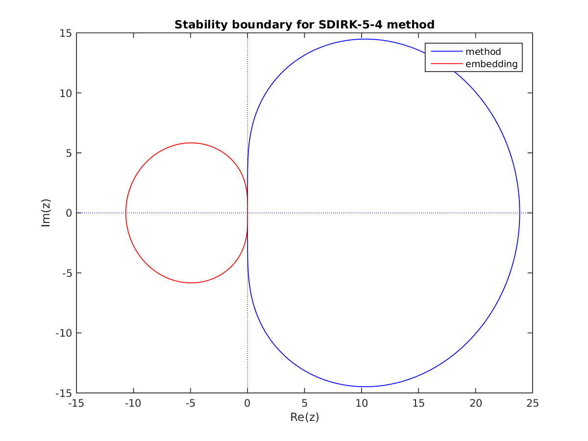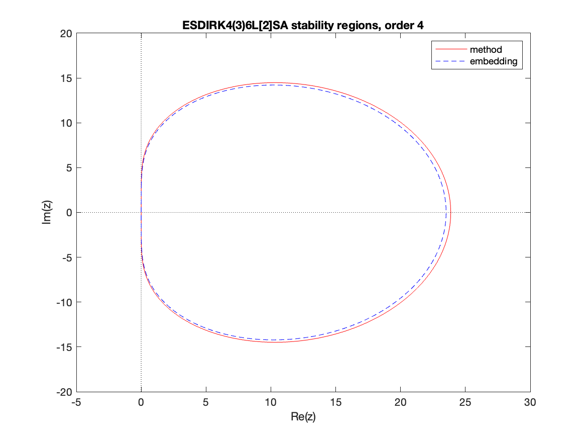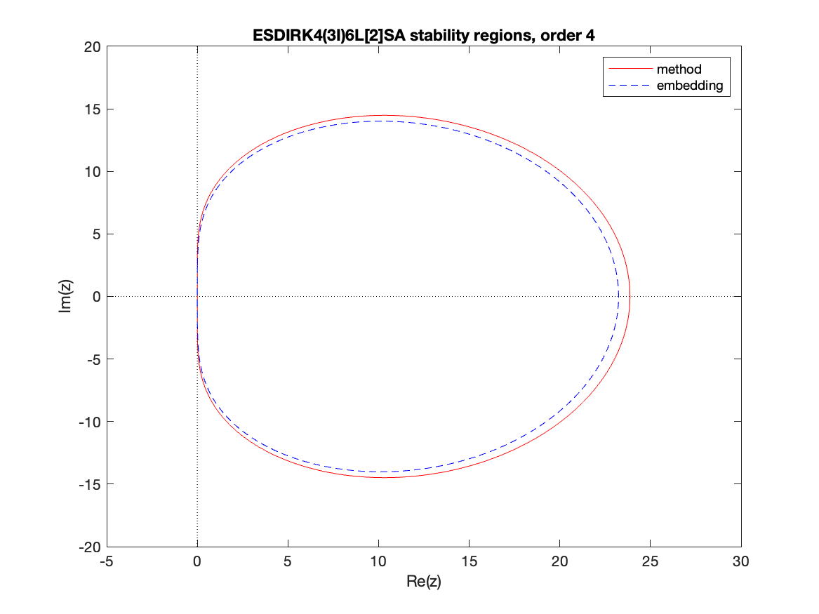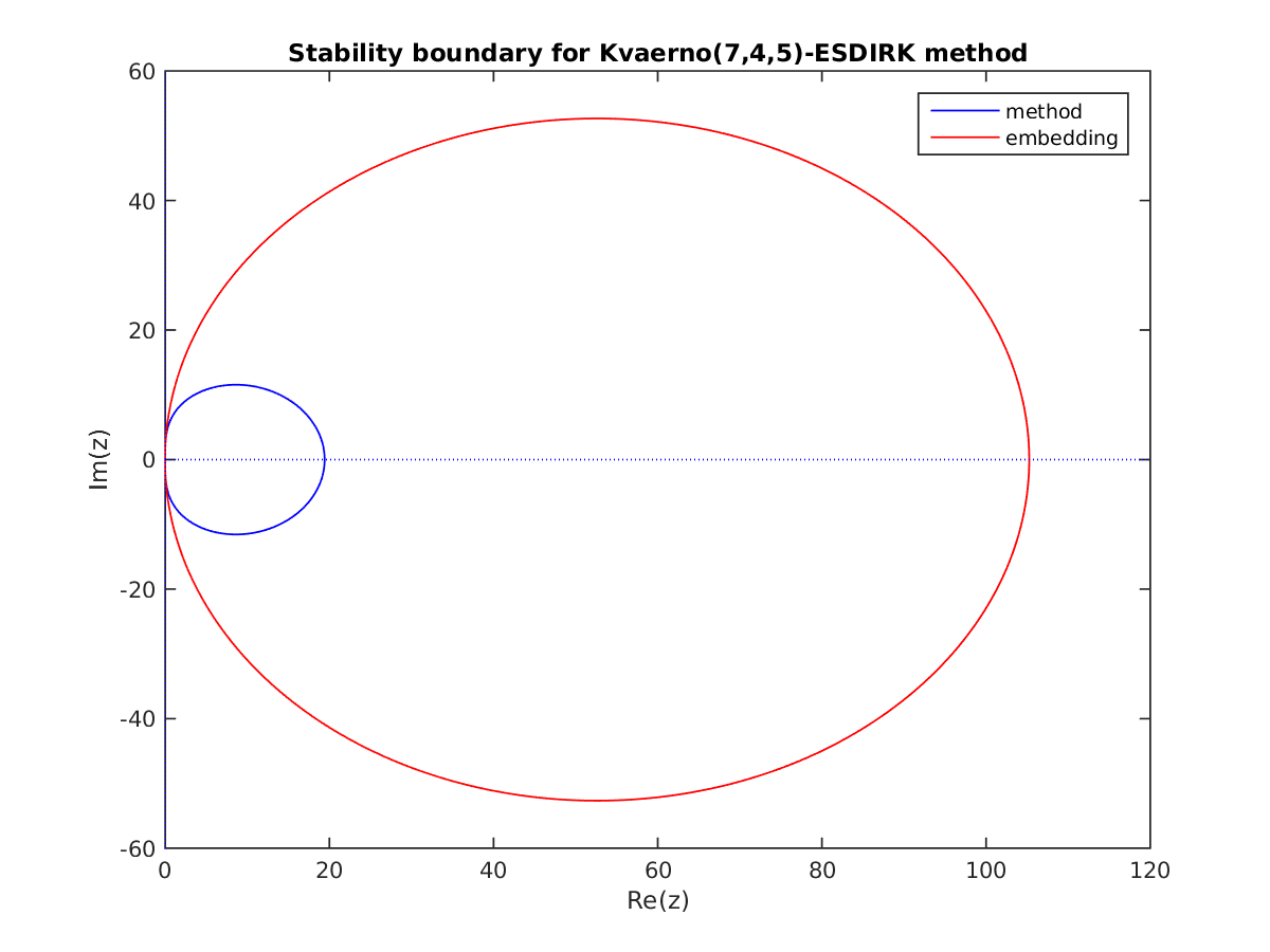 Changed in version 6.3.0: Replaced by ARKODE_ESDIRK547L2SA2_7_4_5 as the default 5th order implicit method and replaced by ARKODE_ARK548L2SAb_DIRK_8_4_5 as the implicit portion of the default 5th order additive method